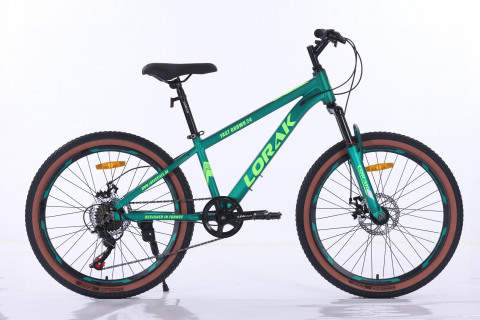 Цвет Матовый Зелёный Материал рамы алюминий Тип тормозов дисковый механический Диаметр колес 26 Размер рамы 15" Вилка амортизационная с регулировкой ход 60 мм пружинная Количество скоростей 7 Передний переключатель - Задний переключатель Shimano TZ 500 Передний тормоз дисковый mech. disc 160 механический Задний тормоз дисковый mech. disc 160 механический Манетки Shimano ST-EF 500 рычажковый Шатуны HDL 1ск. 32 T Каретка картридж Задние звезды ATA 7sp 14-28T Втулки steel на промах Покрышки 26*2.125 с коричневой полосой Обода алюминий двойной LORAK Цепь KMC C030 Руль Lorak 580W*2.2T Вынос резьбовой Подседельный штырь Zoom 27.2*300MM Рулевая колонка резьбовая Седло Lorak Junior Педали пластик Вес 14,9 кг
